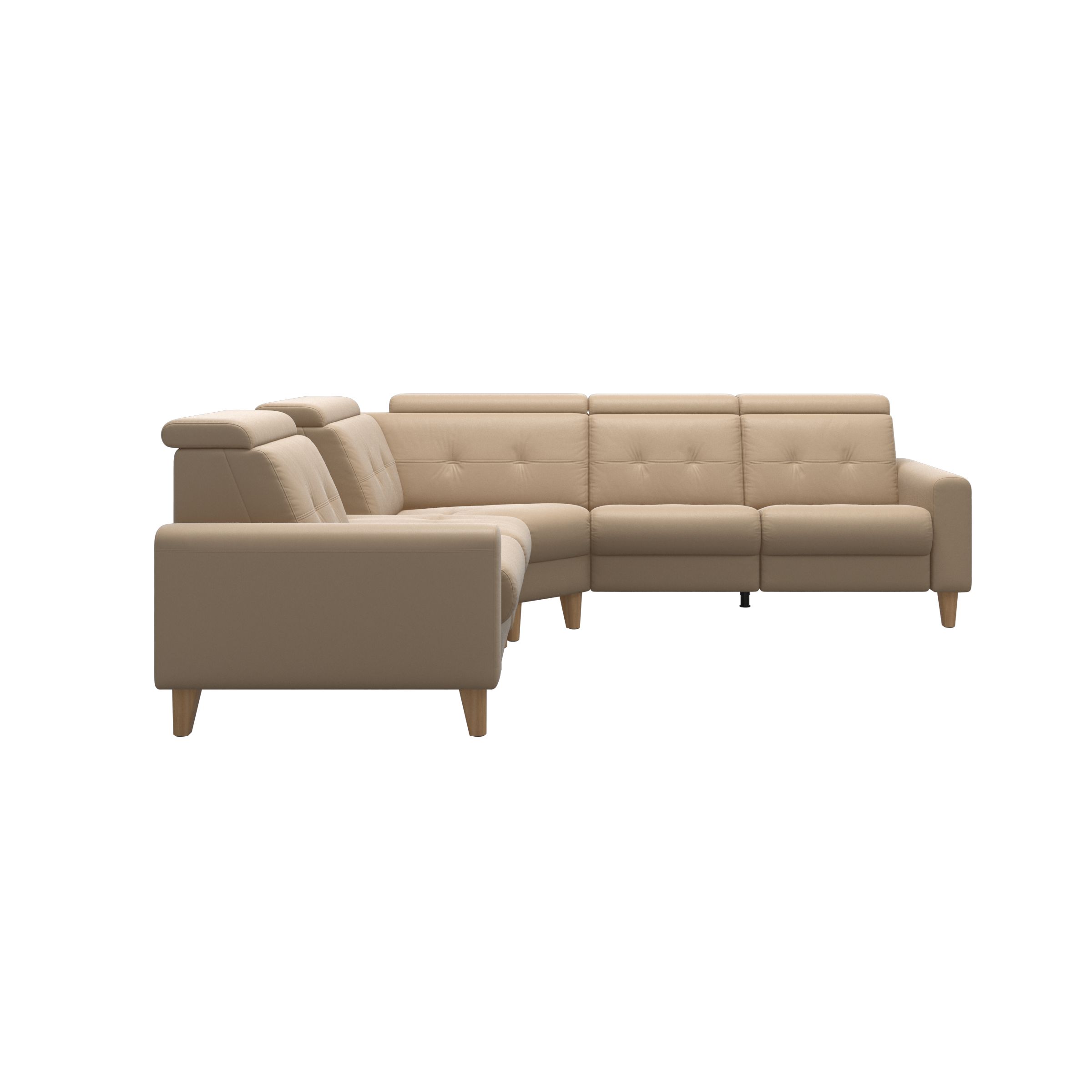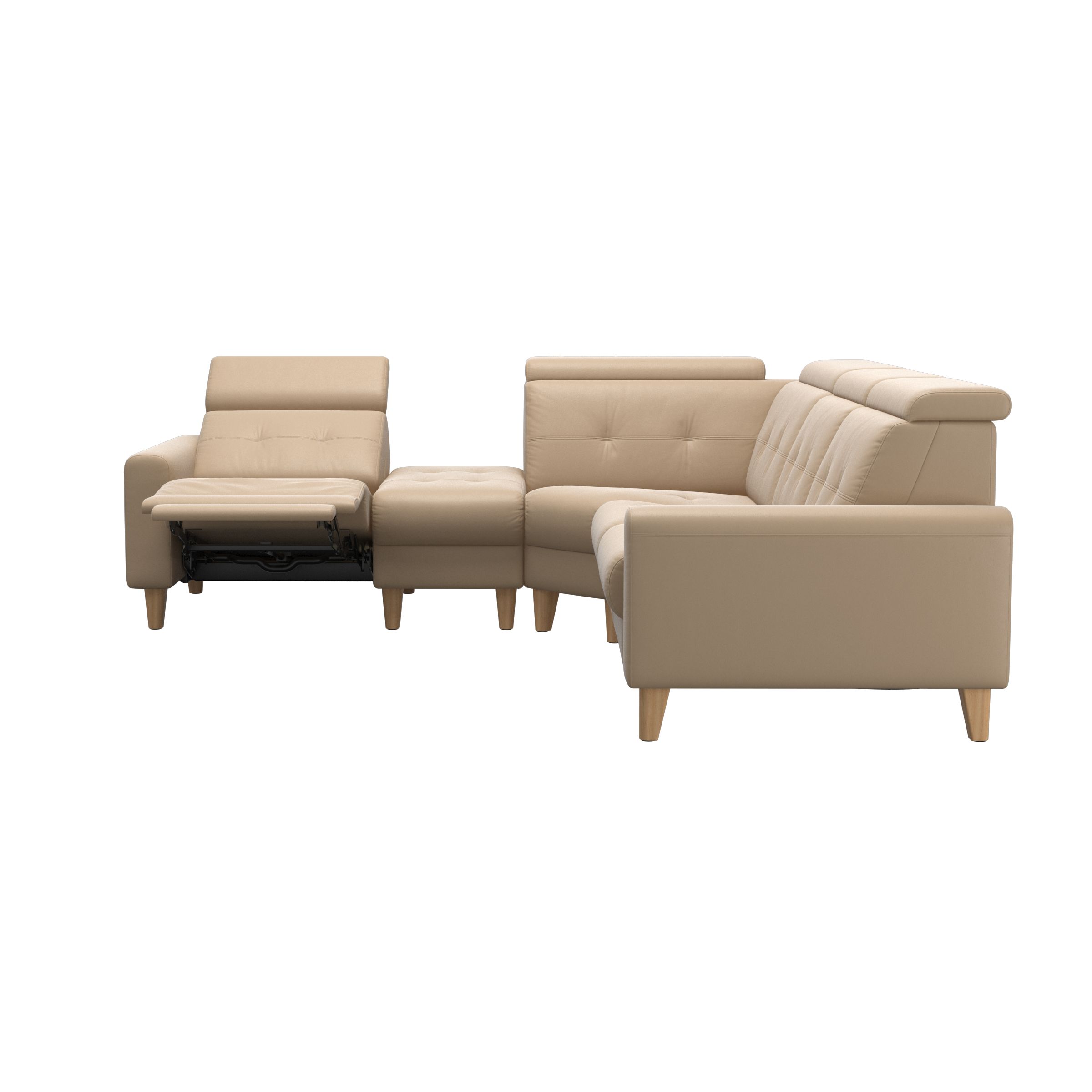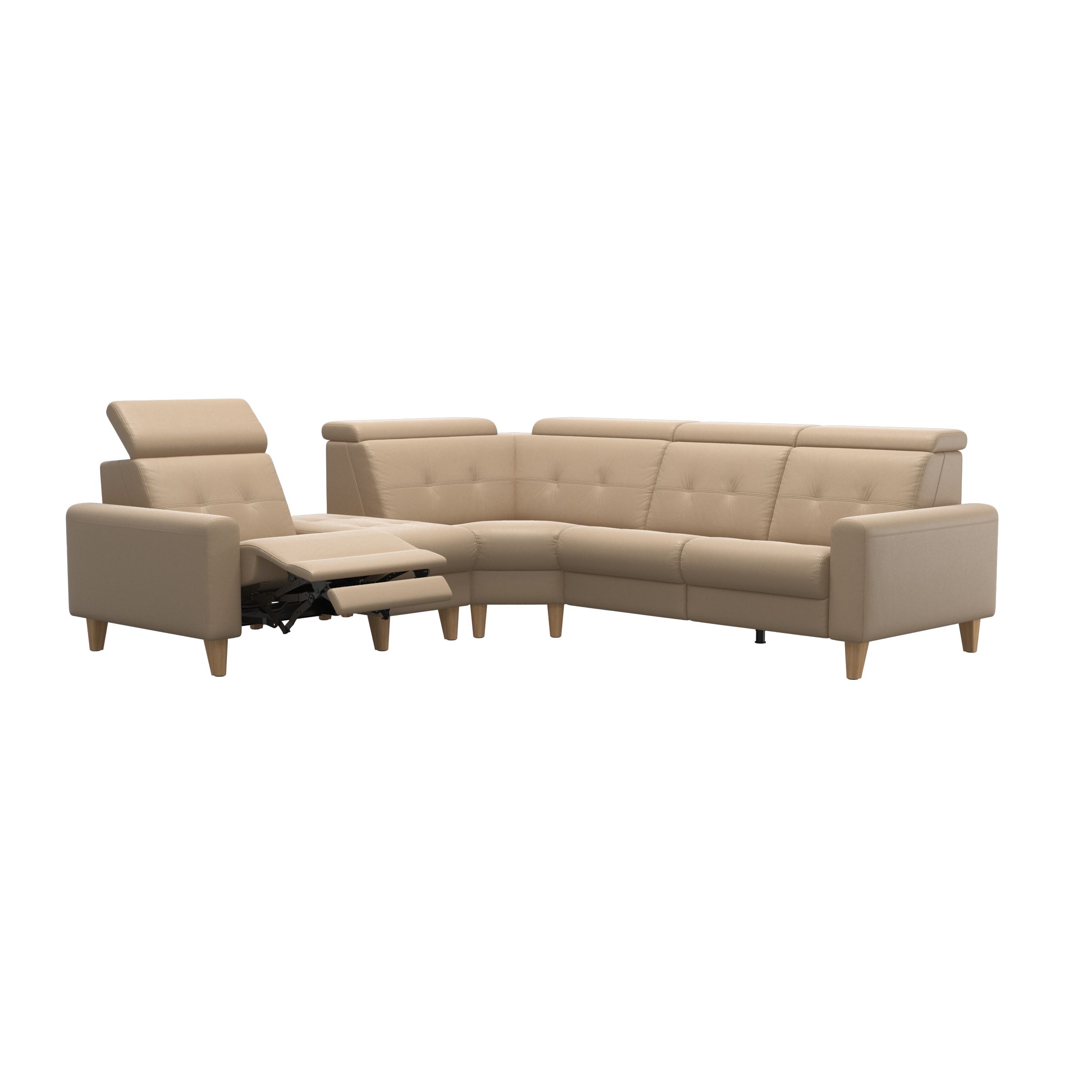 Stressless® Anna er en elegant sofa med mulighed for motoriserede funktioner i hvert sæde. Du kan vælge mellem sæder, der har manuel justering af nakkestøtten, eller motoriserede sæder, der løbende ændrer vinklen på nakkestøtten, ryglænet og den integrerede fodstøtte. Funktionaliteten af denne sofa betyder, at siddestillingen kan justeres til en næsten vandret position, med jævn fordeling af kropsvægten for bedre blodcirkulation og afslapning. Stressless® Anna sofa har mange muligheder for personlig tilpasning af design, størrelse og funktionalitet.