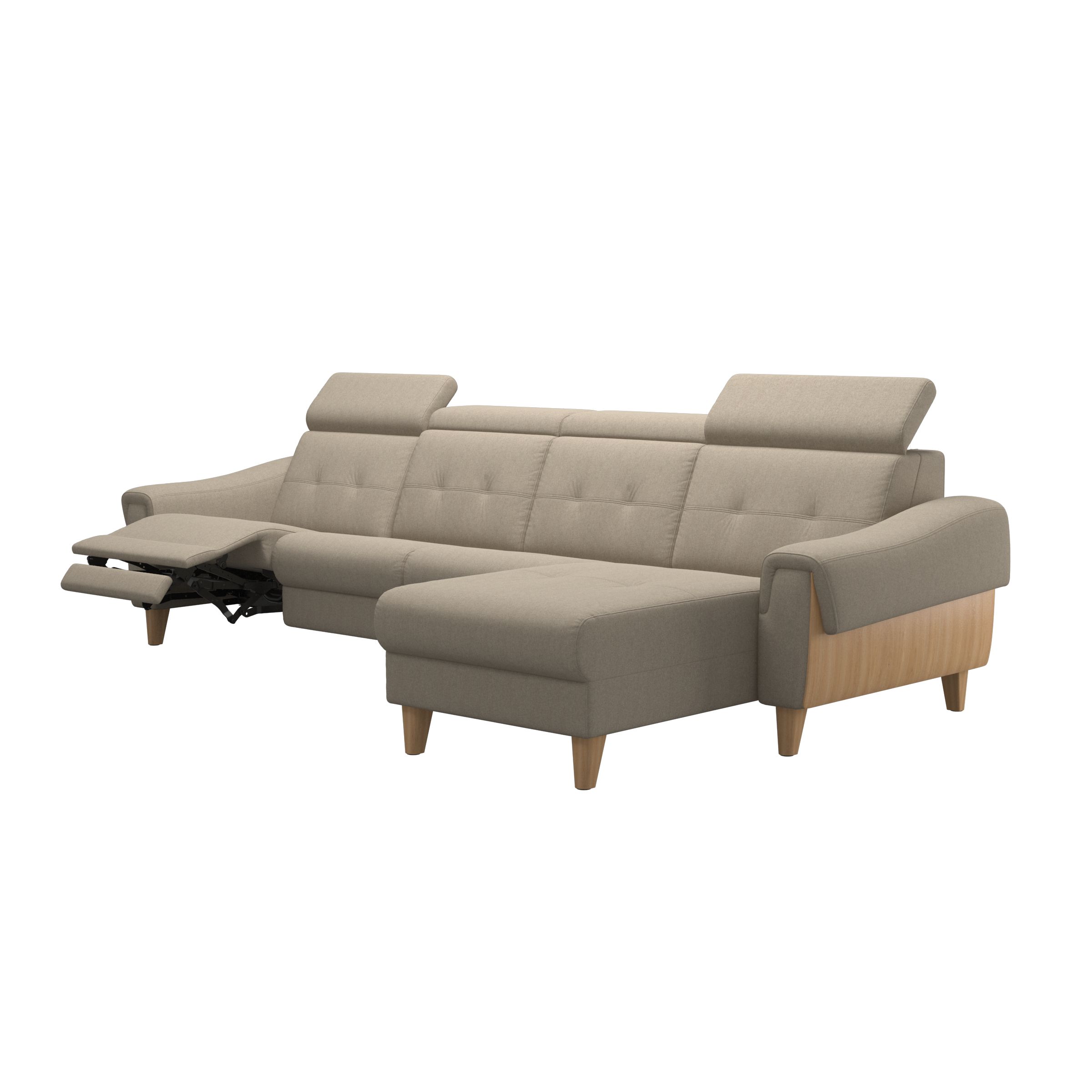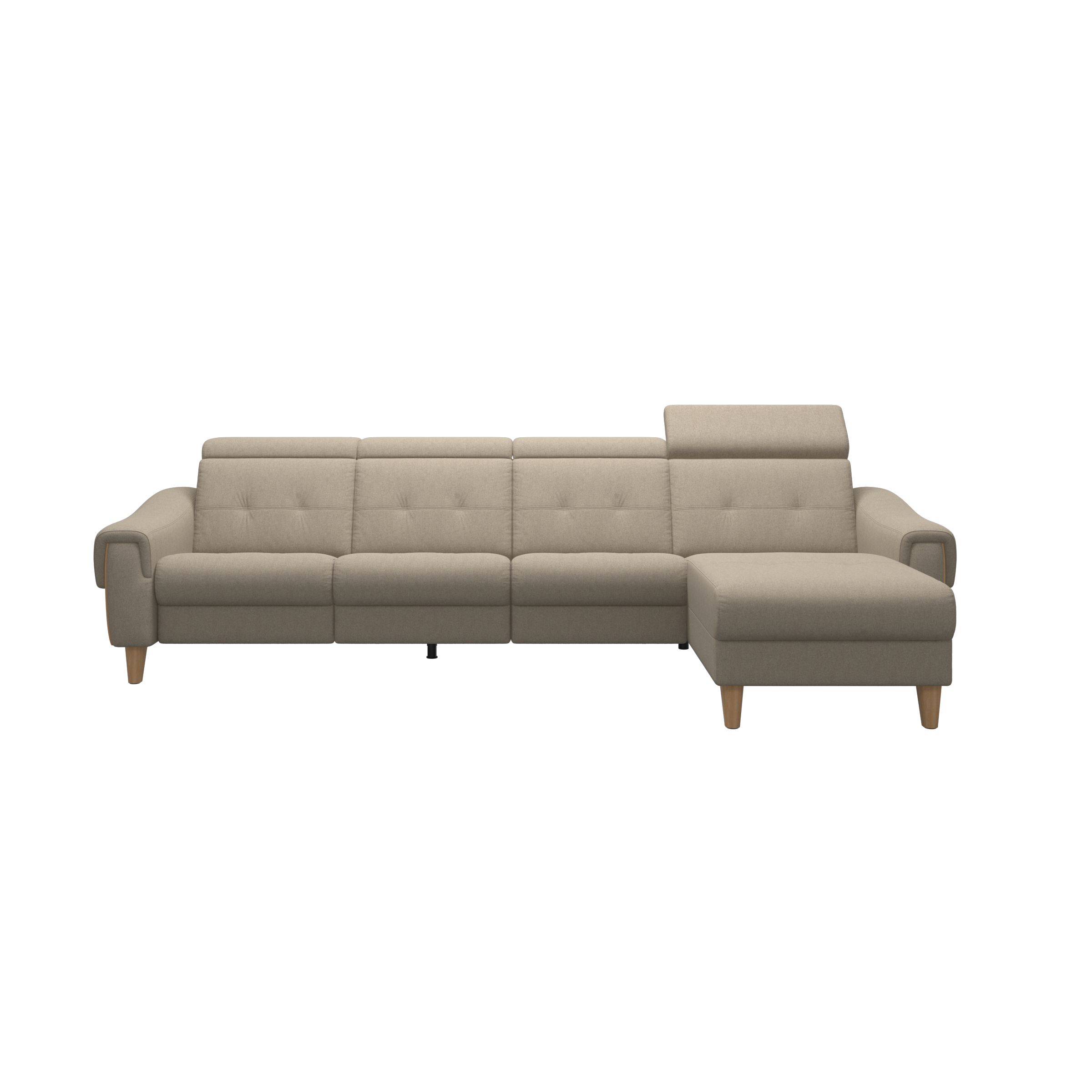 Stressless® Anna er en elegant sofa med mulighed for motoriserede funktioner i hvert sæde. Du kan vælge mellem sæder, der har manuel justering af nakkestøtten, eller motoriserede sæder, der løbende ændrer vinklen på nakkestøtten, ryglænet og den integrerede fodstøtte. Funktionaliteten af denne sofa betyder, at siddestillingen kan justeres til en næsten vandret position, med jævn fordeling af kropsvægten for bedre blodcirkulation og afslapning. Stressless® Anna sofa har mange muligheder for personlig tilpasning af design, størrelse og funktionalitet.