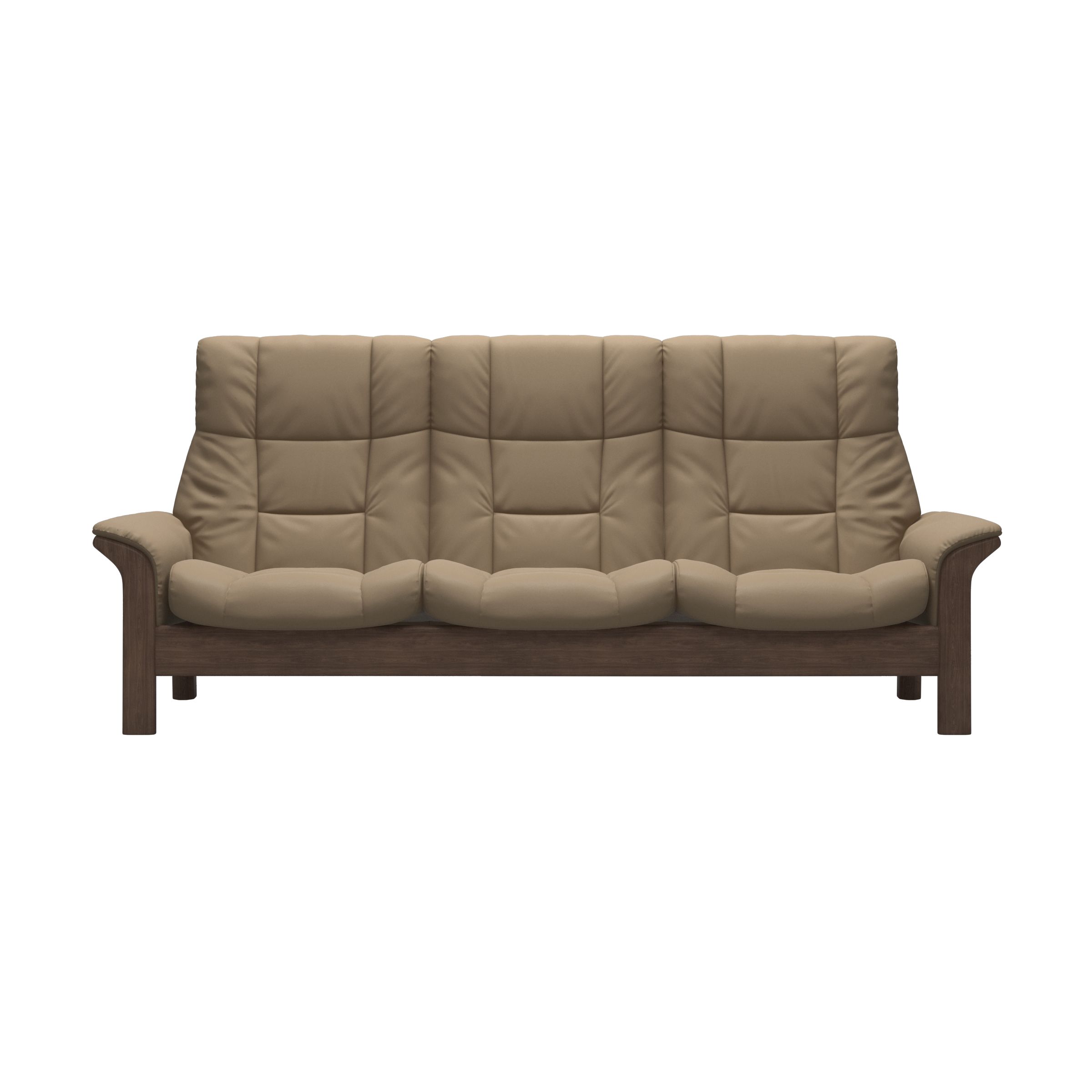 Gentle curves, padded arms and a supple seat, this sofa is as sleek as the name implies. The Stressless Buckingham offers an invitation to pure relaxation in a classic design with details in wood. Individually reclining seats and available in both high and low back ensures maximum support for the entire body.