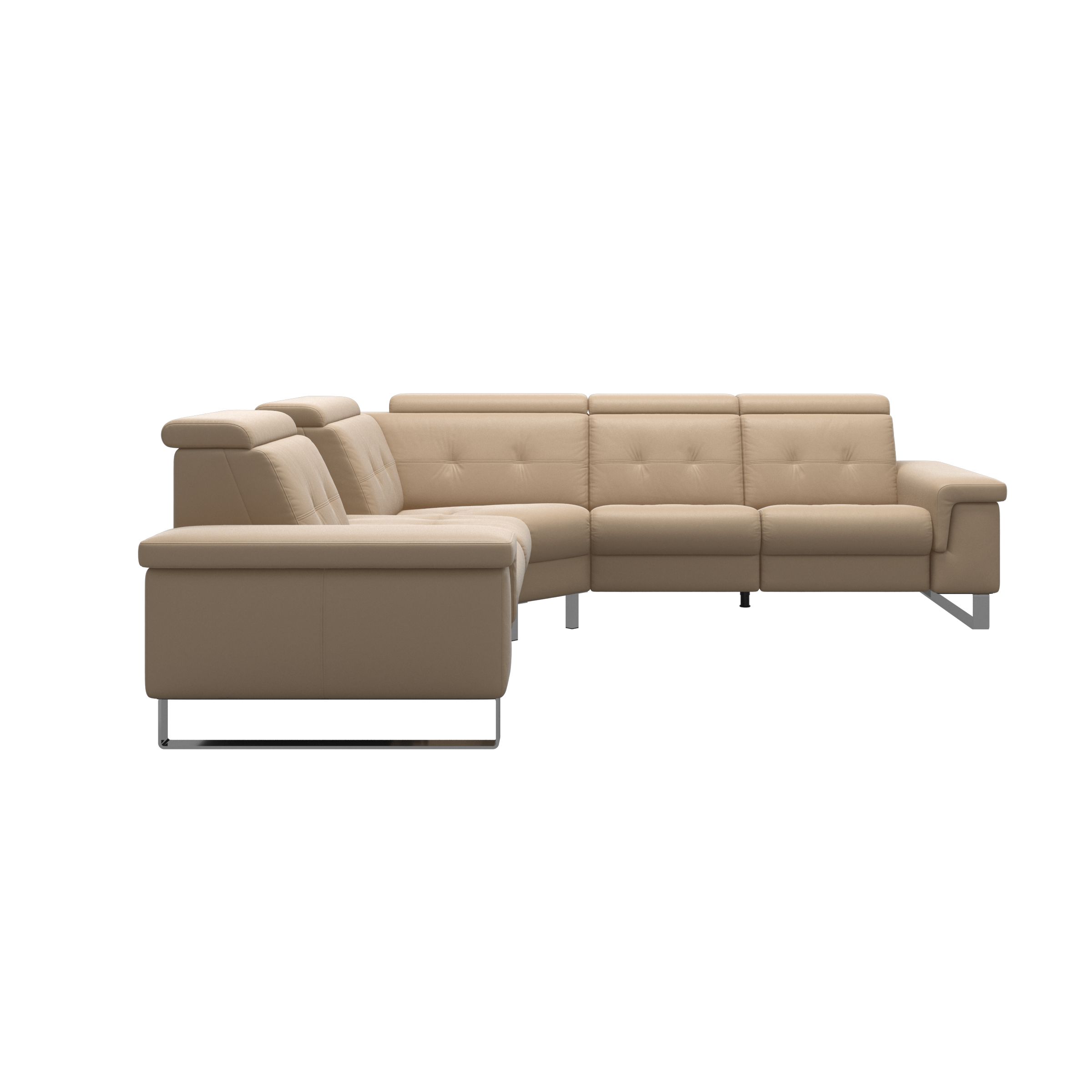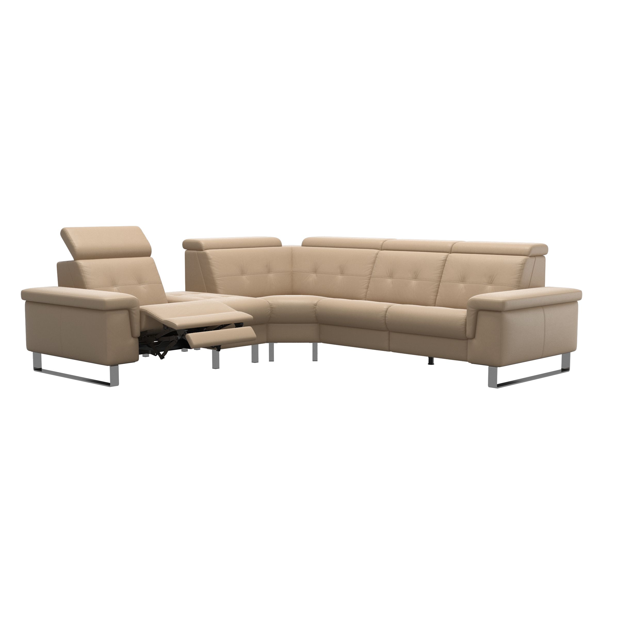 Stressless® Anna is an elegant sofa with the possibility of motorised functionalities in each seat. You can choose between a manual adjustment of the headrest or a built-in power mechanism that unfolds the integrated footrest and provides a highly elevated position of the legs - distributing the body weight more evenly for maximum relaxation. The Stressless® Anna sofa has a wide range of options for customisation of design, size, and functionality.