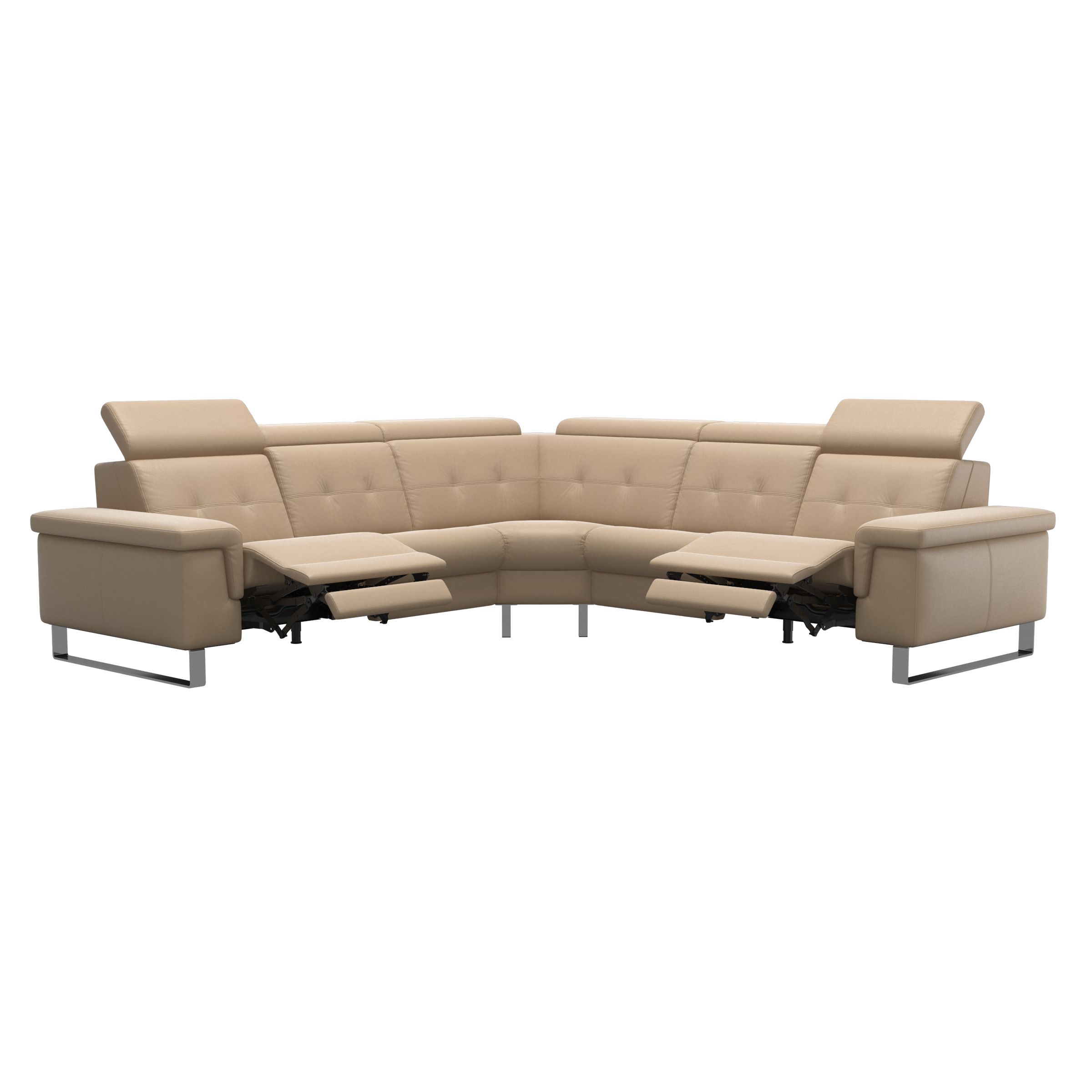Stressless® Anna is an elegant sofa with the possibility of motorised functionalities in each seat. You can choose between a manual adjustment of the headrest or a built-in power mechanism that unfolds the integrated footrest and provides a highly elevated position of the legs - distributing the body weight more evenly for maximum relaxation. The Stressless® Anna sofa has a wide range of options for customisation of design, size, and functionality.