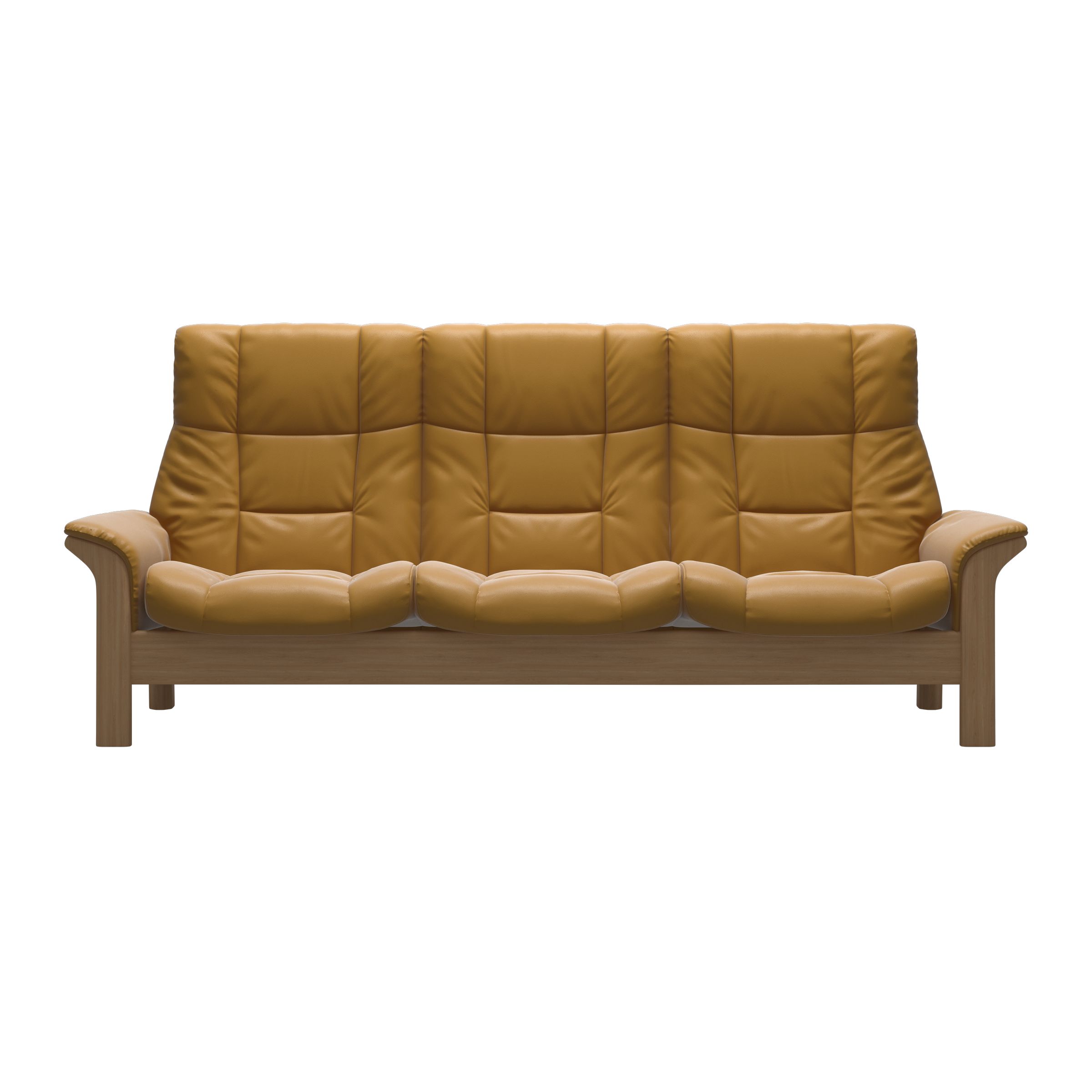 Gentle curves, padded arms and a supple seat, this sofa is as sleek as the name implies. The Stressless Buckingham offers an invitation to pure relaxation in a classic design with details in wood. Individually reclining seats and available in both high and low back ensures maximum support for the entire body.