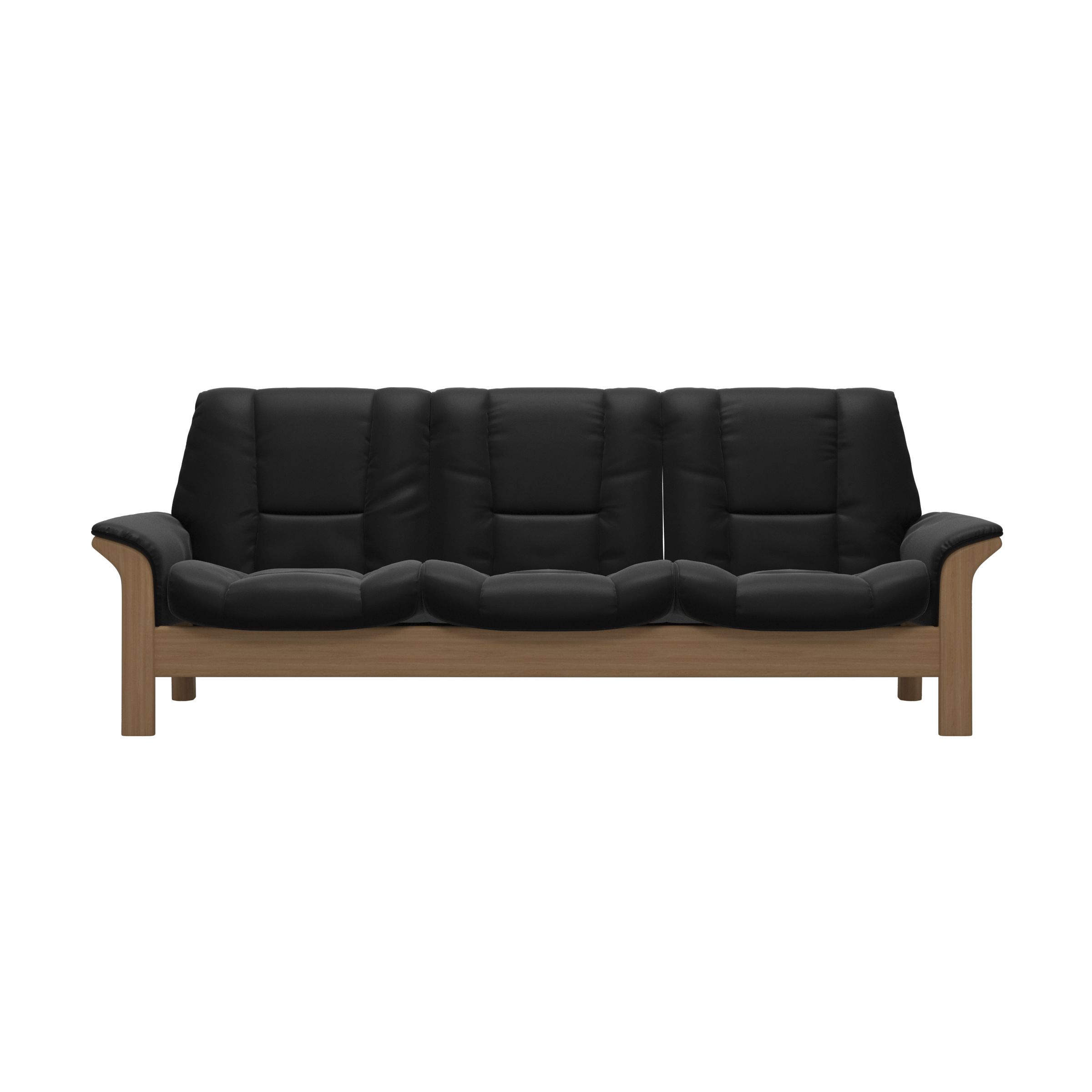 Gentle curves, padded arms and a supple seat, this sofa is as sleek as the name implies. The Stressless Buckingham offers an invitation to pure relaxation in a classic design with details in wood. Individually reclining seats and available in both high and low back ensures maximum support for the entire body.