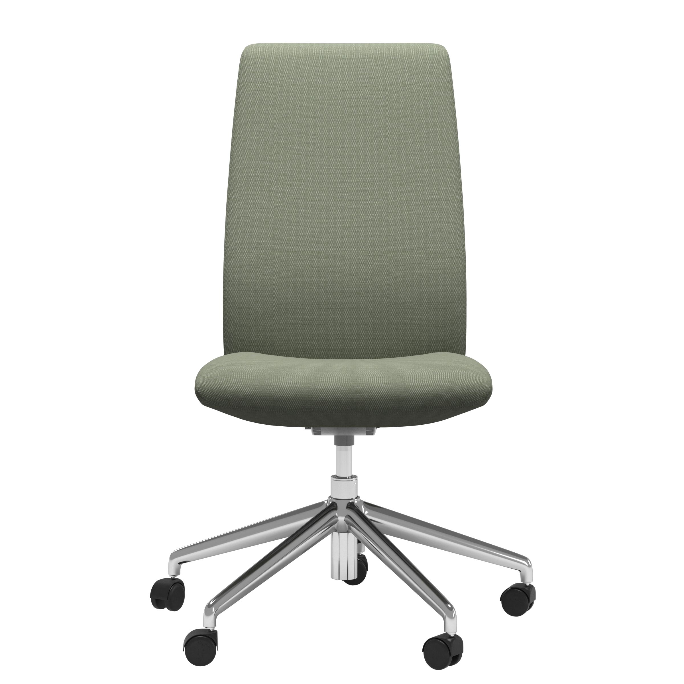 Stressless® Home Office chairs have a light design that will blend in with any style. The chairs give you the possibility to effortlessly shift position during the day. The seat and back follow your movements and offer good support. Lean back, and the backrest will recline while the seat moves forward in a coordinated movement. A discrete flexibility in the seat offers good support and reduces the pressure on your lower thighs as you lean forward. The large choice of covers makes it easy to match with the rest of the interior, and you can even get dining chairs with the exact same cushion design and covers. The wheels on the base make it easy to move around, and there is a lever under the seat that allows you to adjust the seat height by up to 12 centimetres.