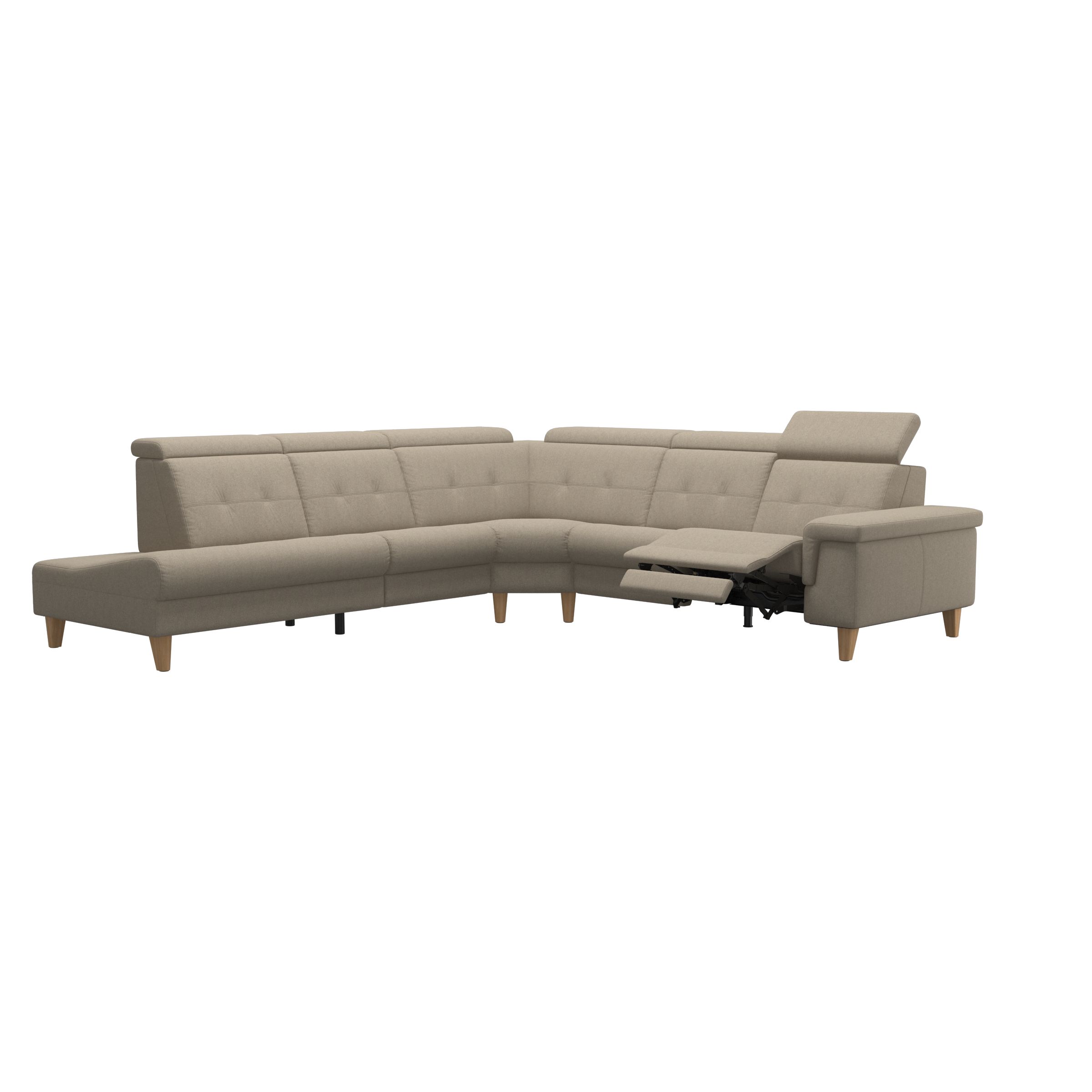 Stressless® Anna es un sofá elegante con posibilidad de funcionalidades motorizadas en cada asiento. Puede elegir entre un ajuste manual del reposacabezas o un mecanismo eléctrico incorporado que despliega el reposapiés integrado y proporciona una posición muy elevada de las piernas, distribuyendo el peso corporal de manera más uniforme para una relajación máxima. El sofá Stressless® Anna tiene una amplia gama de opciones de personalización de diseño, tamaño y funcionalidad.