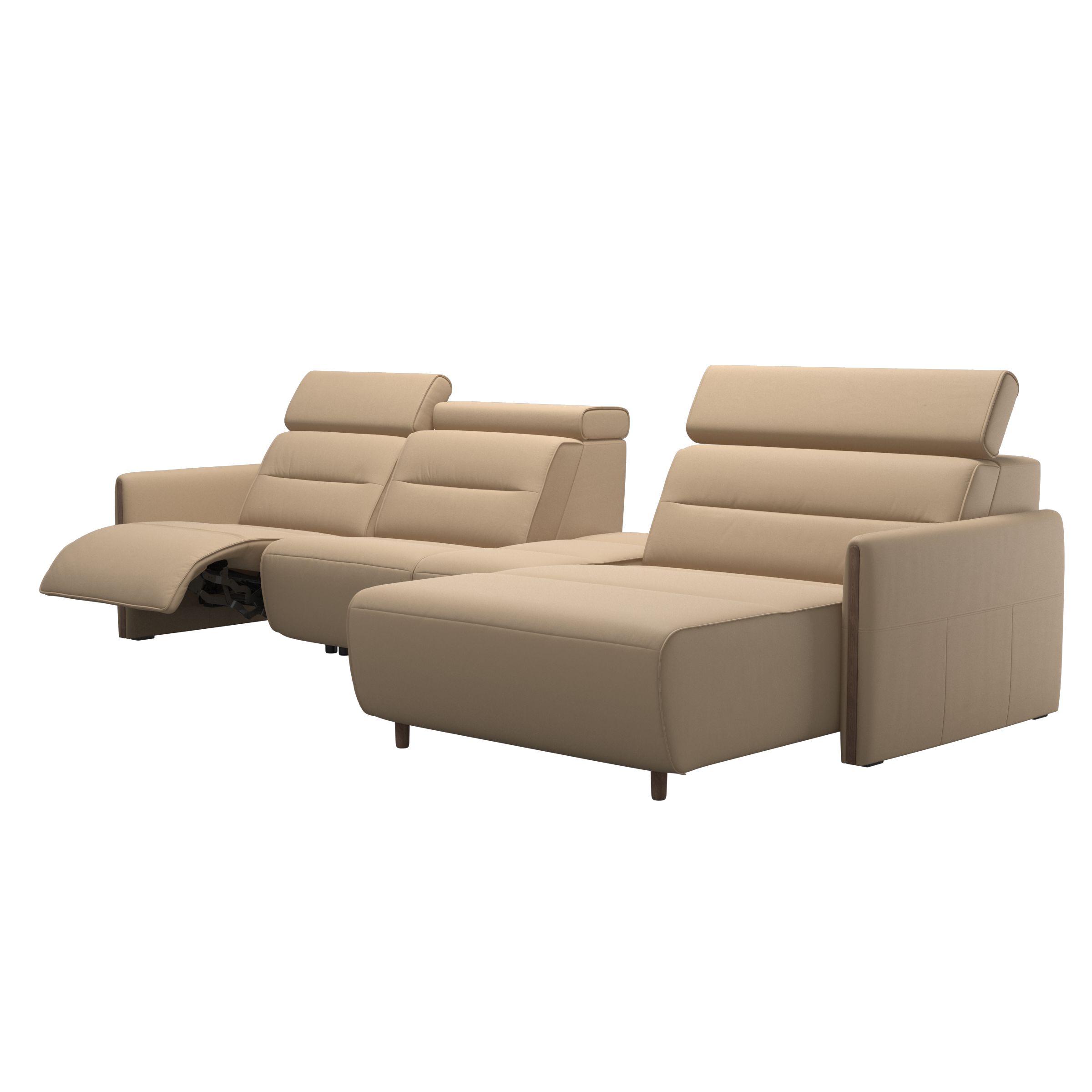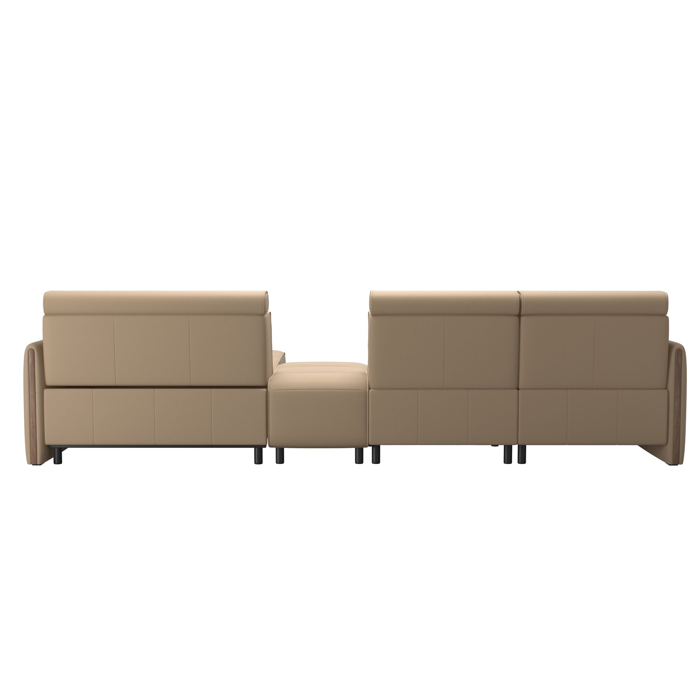 Stressless Emily -sohva näyttää upealta sulavien linjojensa ja modernin ilmeensä ansiosta. Sohvan nykyaikainen design ja pehmeät tyynyt kutsuvat istumaan alas ja rentoutumaan. Kaikissa istuinmoduuleissa on korkeussäädettävä niskatuki. Saatavilla joko kiinteällä selkänojalla tai moottoreilla varustettuna, jotta selkänojaa ja jalkatukea voi säätää omien mieltymysten mukaisesti. Valitse käsinojaan joko teräksiset tai puiset yksityiskohdat. Stressless Tokyo- ja Stressless View -lepotuolit sopivat hyvin yhteen Stressless Emily -sohvan kanssa.