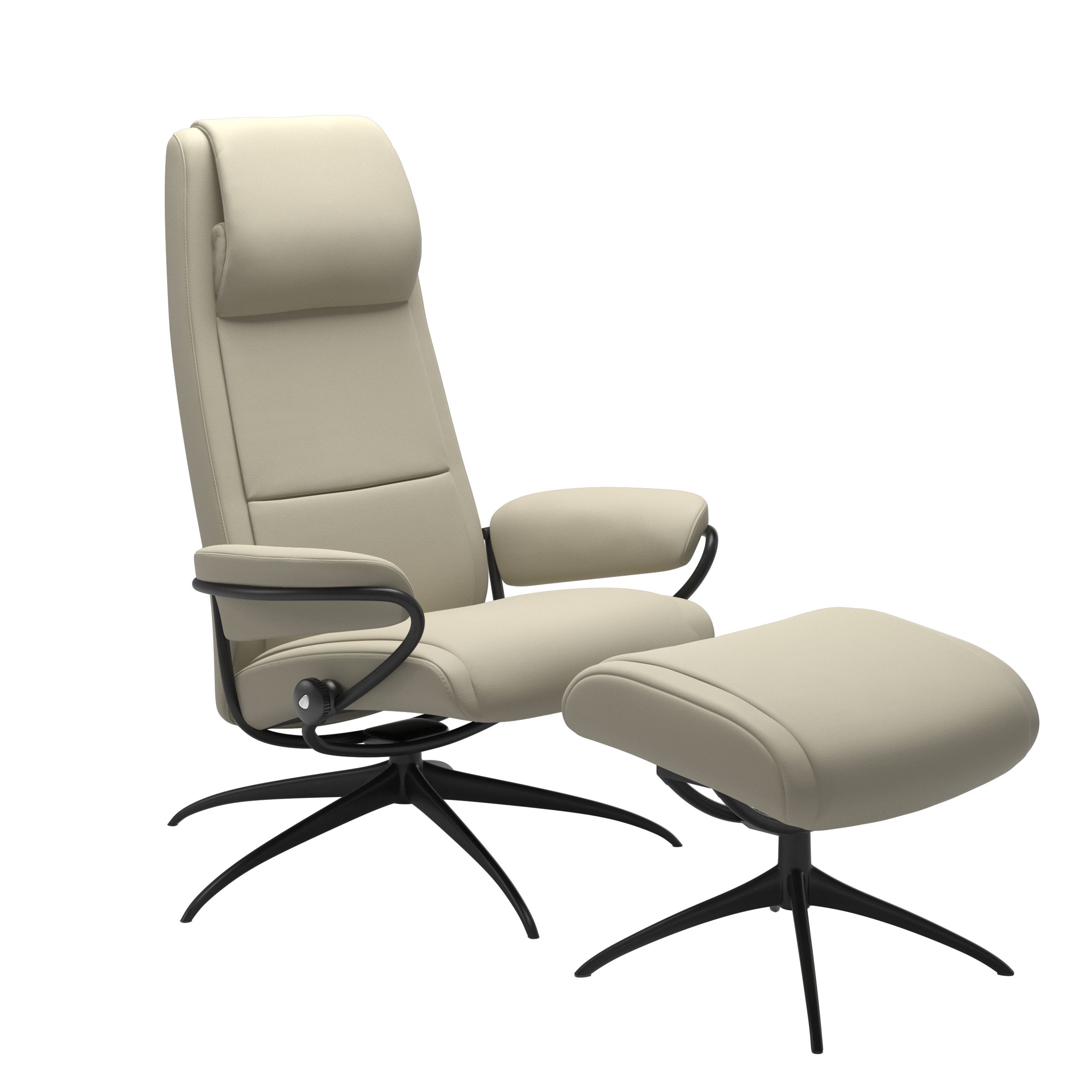 En slank profil kombinert med en stram form, forteller historien om en hvilestol med en lang designarv – som samtidig holder øynene mot framtiden. Du kan med andre ord være trygg på at den ikke går av moten med det første. Selvfølgelig har Stressless Paris alle komfortdetaljene du har blitt vant til i hvilestoler fra Stressless. Velg mellom høy rygg med justerbar nakkepute, lav rygg og rygg med høyderegulerbar hodestøtte som kan justeres opp til 10 cm. Denne modellen er tilgjengelige med standard høyde eller høy base (+4 cm setehøyde og høyde).