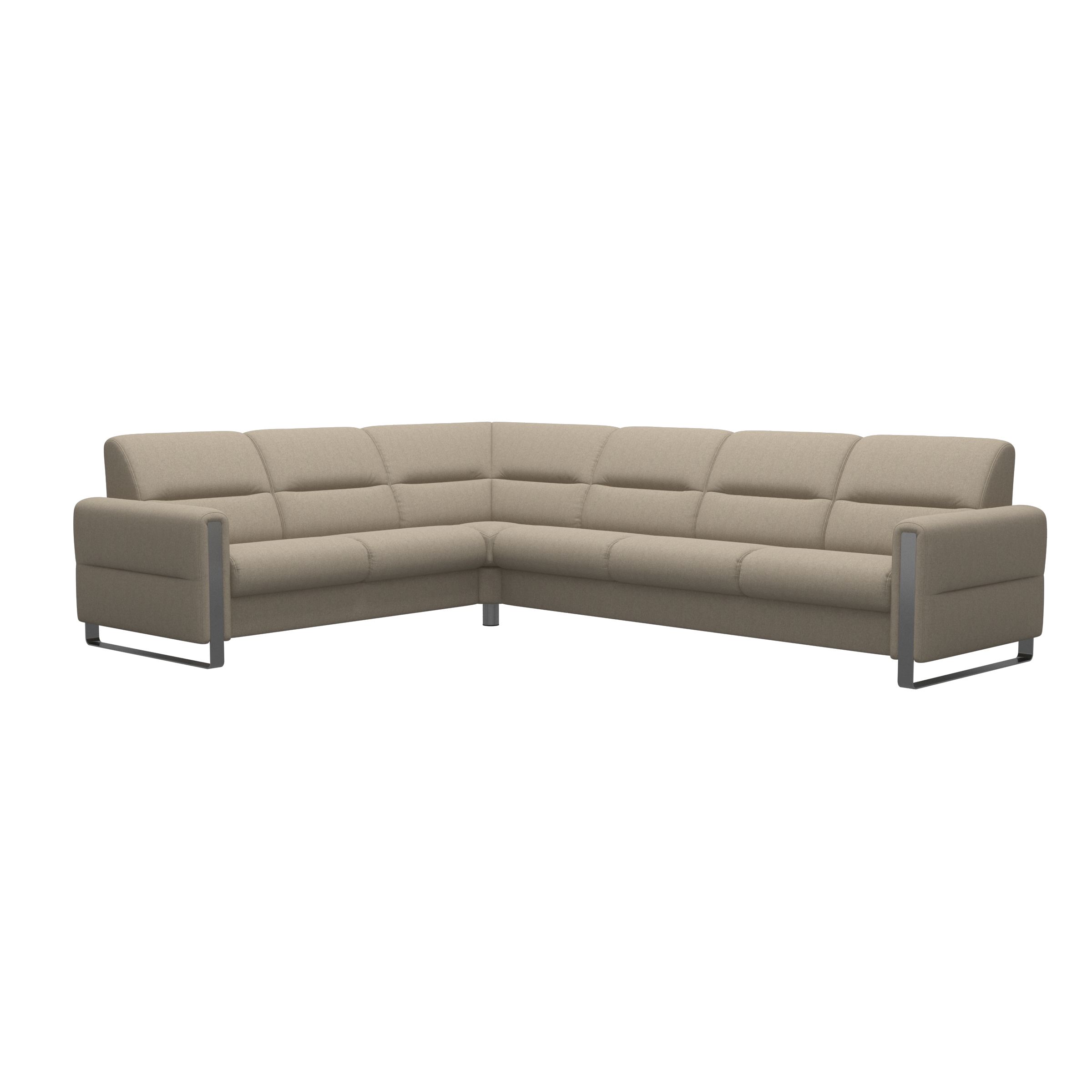 Fine detaljer i stål på armlener og bein gir et moderne utseende og en naturlig avslutning mot gulv. Inndragninger på sidene gir sofaen et karakteristisk preg og en mykhet i uttrykket som står til sete og rygg. Denne sofaen har god sittekomfort og egner seg også veldig godt for en ettermiddagshvil. Kombiner gjerne sofagruppen med Stressless® hvilestol i samme tekstil eller hud – eller velg ulike trekk i matchende farger.