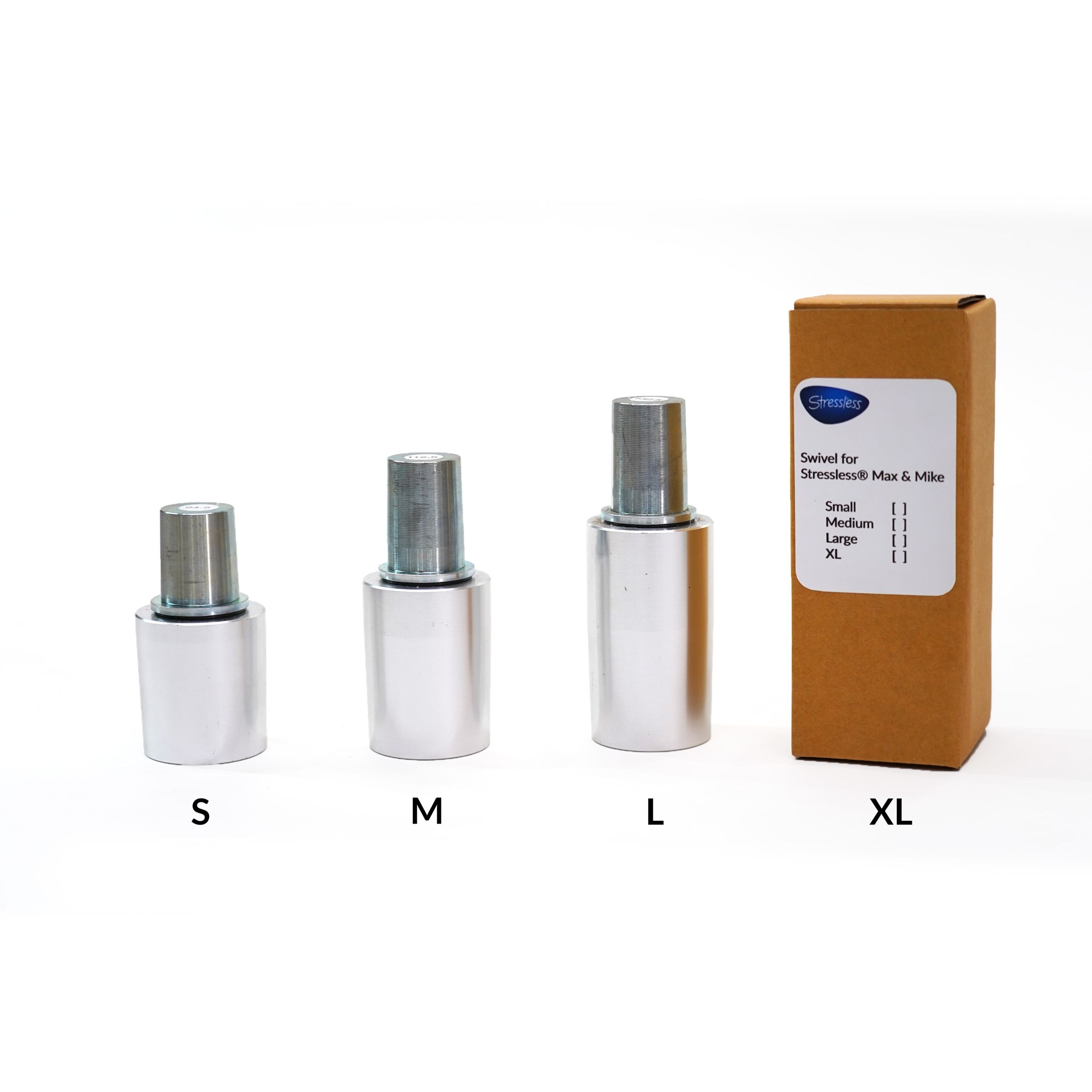If you prefer another seat height you can order an extra swivel and easily adjust any size of the chair with the seat height of either Small (9.45) , Medium (11.25), Large (13.25) and XL (15.25cm).