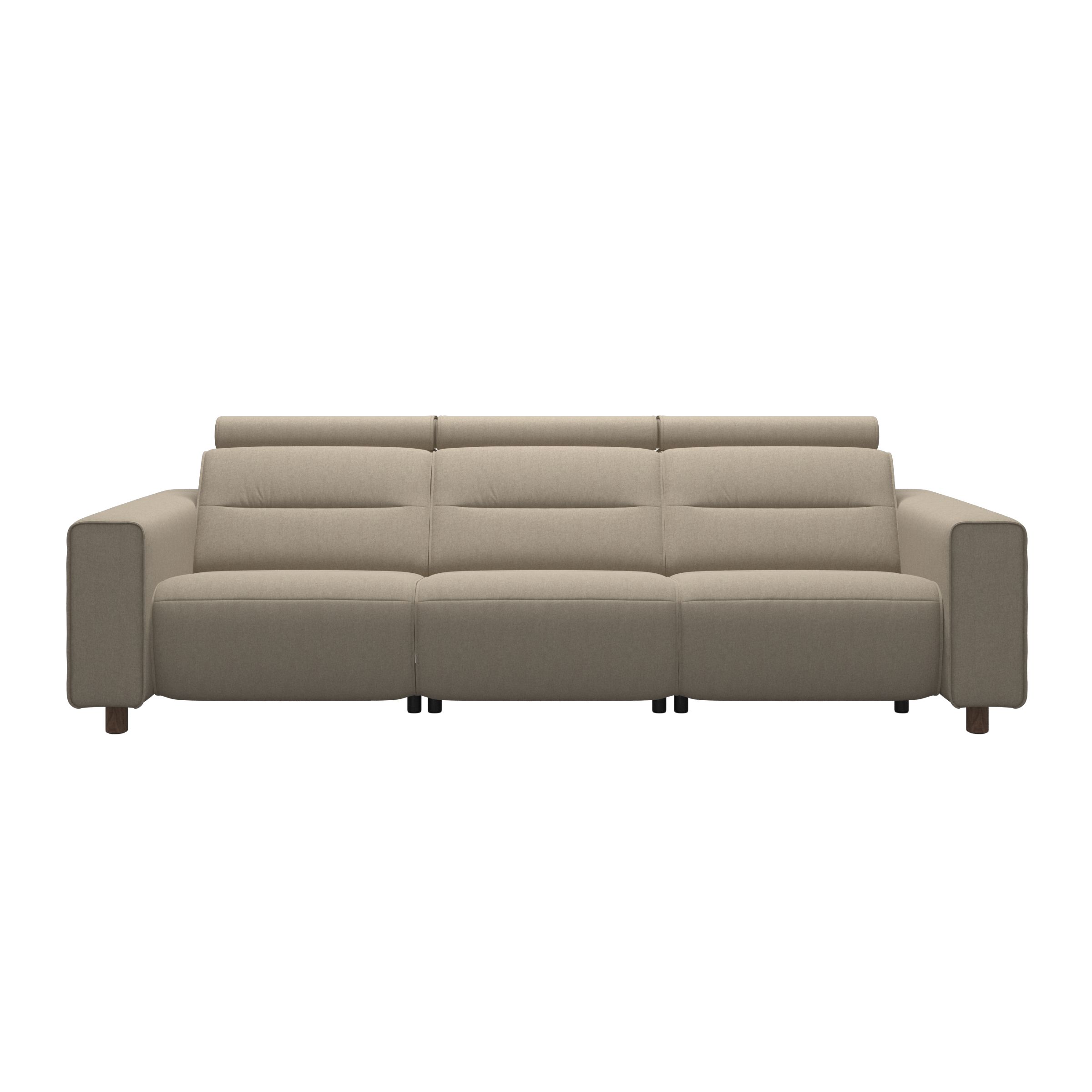 Sleek lines with a modern look give Stressless® Emily an embracing appearance. The contemporary design of the soft enveloping cushions invite you to sit down and relax. All seat modules come with an adjustable headrest, either with fixed seat-back or fitted with motors for personal adjustment of the leg support. Choose between slim armrests with steel or wood details, or a wider armrest. The recliners Stressless® Tokyo and Stressless® View both couples up nicely with the Stressless® Emily sofa.